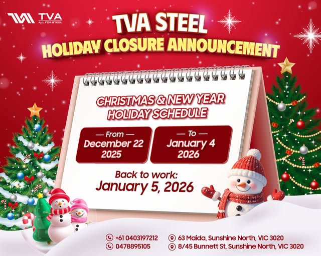 TVA STEEL – HOLIDAY CLOSURE ANNOUNCEMENT